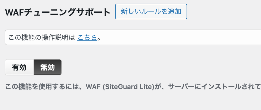 WAFの機能は、レンタルサーバーの管理画面等でON/OFFを切り替えることができます。これを使って、一時的に機能をOFFにします。